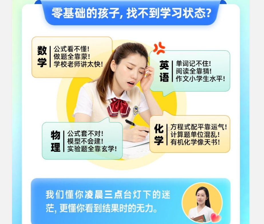 高三基础进阶班数英物化基础进阶攻略 专属规划师指导,你缺的不是努力,而是有效的学习方法!解析较新高考考情帮你划高考范围,依据你的薄弱项定制重难点省时,近十年高考真题提炼,任务驱动教学法