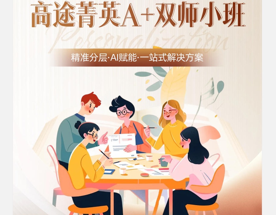 高途菁英双师A 小班以系统化科学教育为根基,秉承"有温度的知识传递,有深度的思维培养"理念,打造师生双向奔赴的成长共同体。在这里,双师协同护航让每个闪光点都被捕捉,个性化关注让每份潜能都得以激发--我们致力于唤醒学生对知识的渴望,夯实终身学习的能力基石,铸就坚毅向上的品格力量。用学情追踪见证蜕变轨迹,让每一步成长都被看见,每一分突破都值得喝彩。与万千家庭同心致远,助力青少年在求知路上遇见更好的自己!